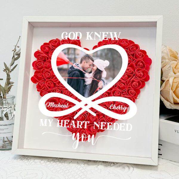 Custom Photo God Knew My Heart Needed You Gift For Couple Personalized Custom Flower Shadow Box – Zanviss